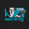 Con este papel, Clint Eastwood se convirtió en el gran referente del cine policíaco de los 70 y piedra angular del género. Su descarada insolencia nos desafía a "alegrarle el día" mientras nos encañona con su revólver a través de esta camiseta. Toda una pose digna de ser inmortalizada en uno de nuestros diseños.