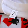Fantaseando con la maravillosa posibilidad de unirlos de algún modo, imaginamos esta camiseta. En ella intentamos aunar la iconografía de la soberbia Pulp Fiction con el estilo inconfundible del maestro Saul Bass.